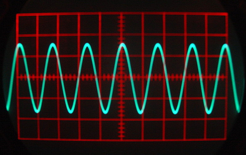 Bild 7 zeigt eine Sinusspannung mit 15 MHz bei 40 nsec/cm.