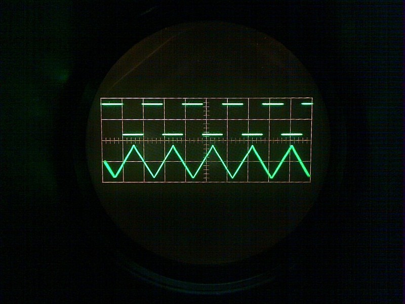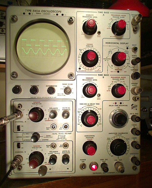 Vertikal: Plug in Type CA, Dual Trace (Alt,Chop,Add, Sub), 50mV/cm - 20V/cm, Frequenzgang: DC bis 24/30 MHz, 4cm vertikale Auslenkung.