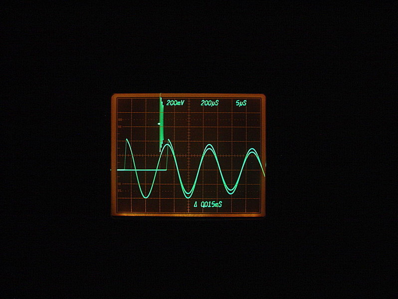 Bild 5 zeigt die Periodenmessung an der gedämpften Schwingung mit 15usec.