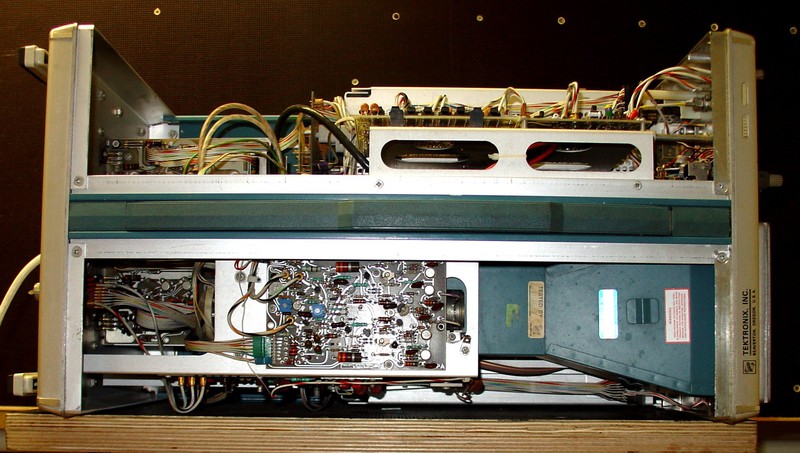 Vertikal: 1 Kanal mit 7A19, bis ca. 500 MHz, 10 mV/cm - 1V/cm an 50 Ohm